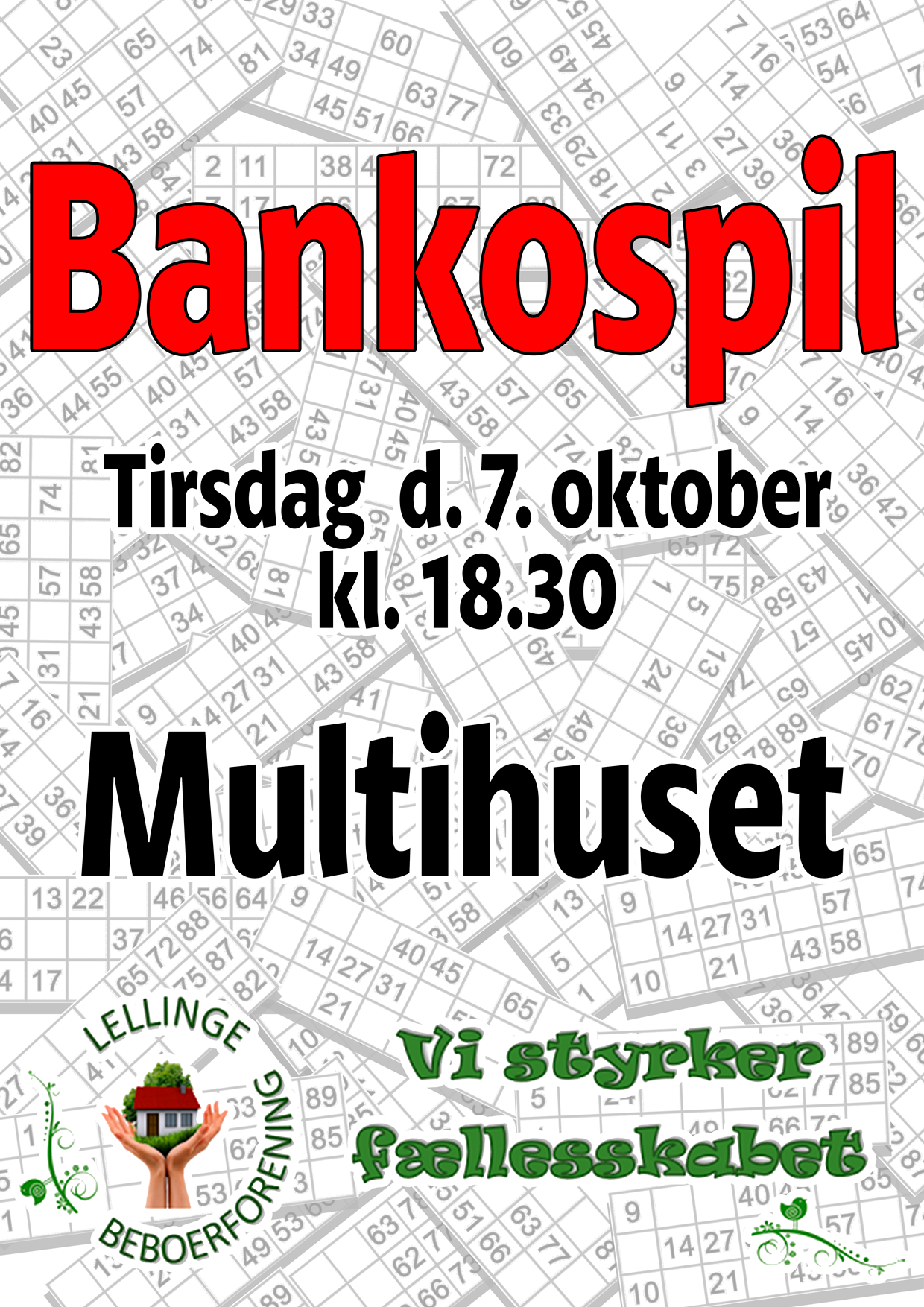 Lellinge Beboerforening inviterer til Banko tirsdag den 7. oktober i Multihallen.