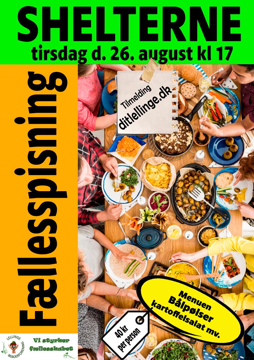 Lellinge Beboerforening inviterer til Fællesspisning tirsdag d. 26. august 2025 ved Shelterne.